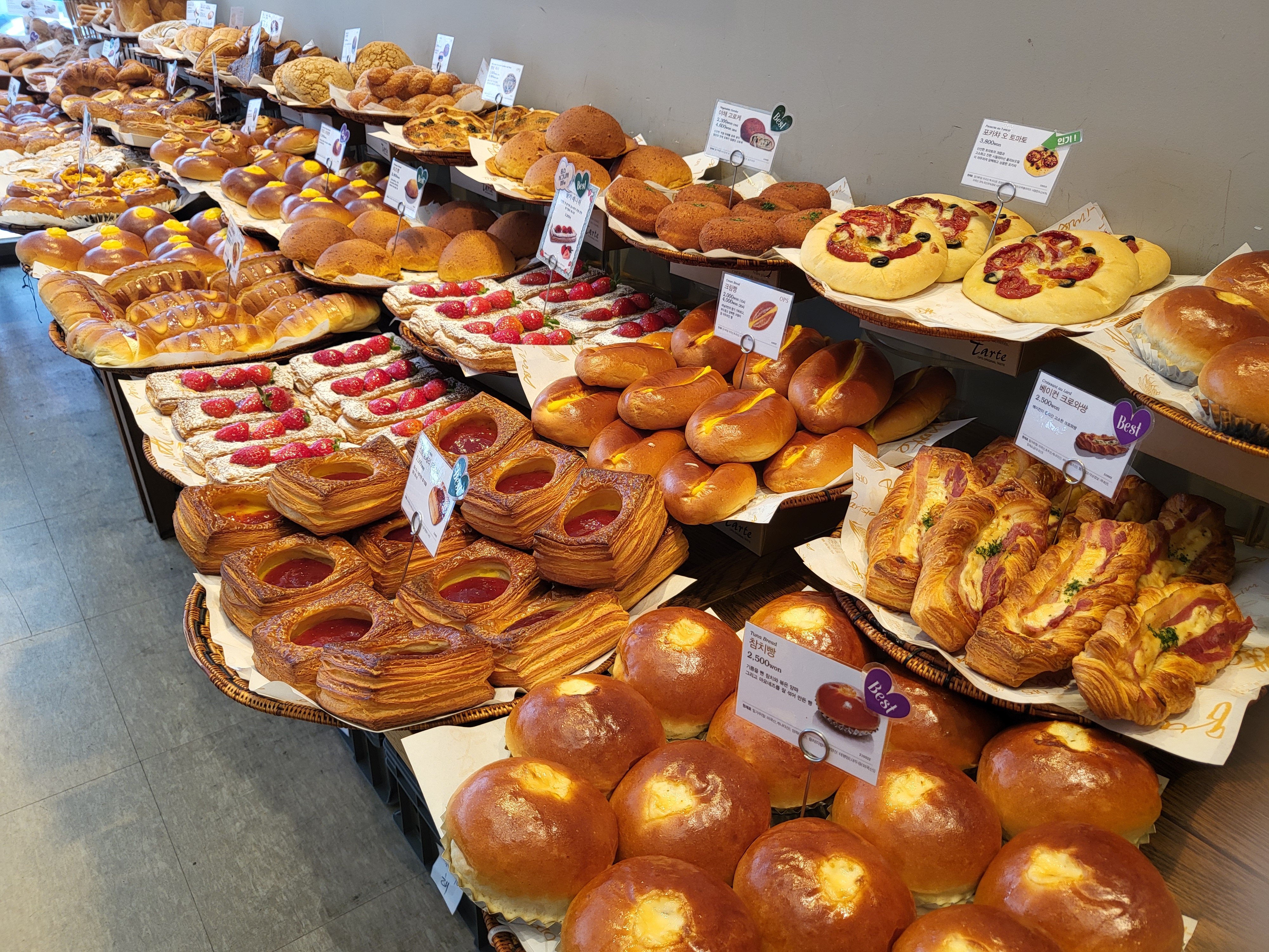 그떄 왔을 땐 계단까지 줄이어서 일열종대로 빵을 골라야 했었다.